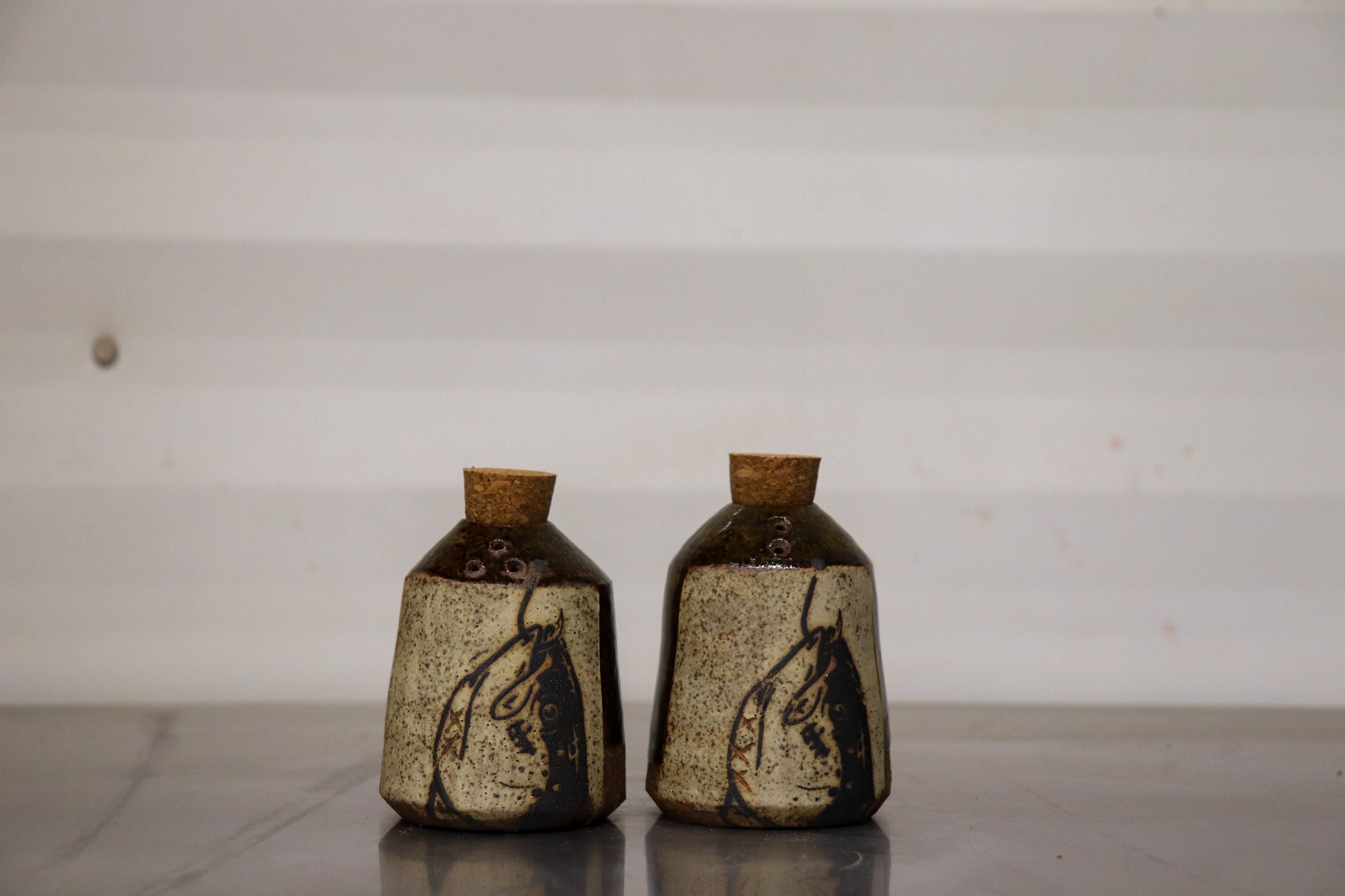 These handmade ceramic salt and pepper shakers are wheel-thrown and finished in earthy, natural glazes that highlight the texture of the clay. Each shaker features a hand-drawn graphic, making every pair subtly unique while still working as a cohesive set.
