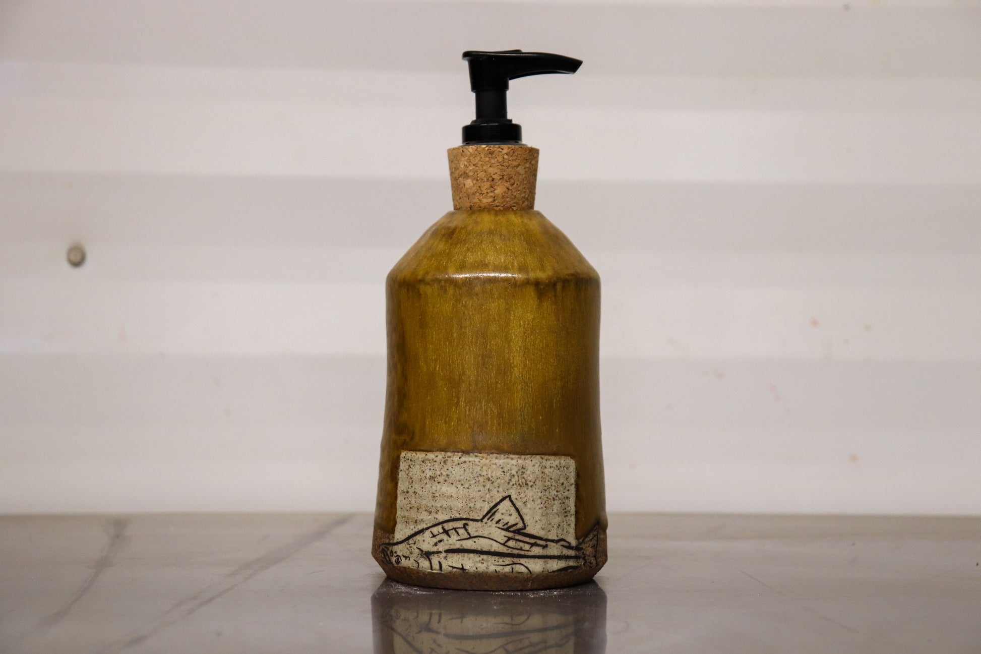 Get ready to suds up in style with a totally unique, hand-thrown ceramic soap dispenser!
