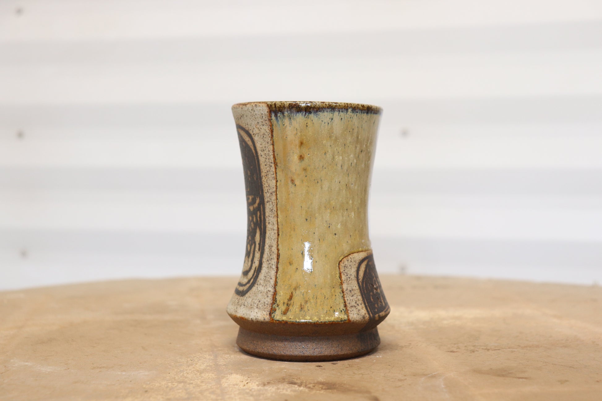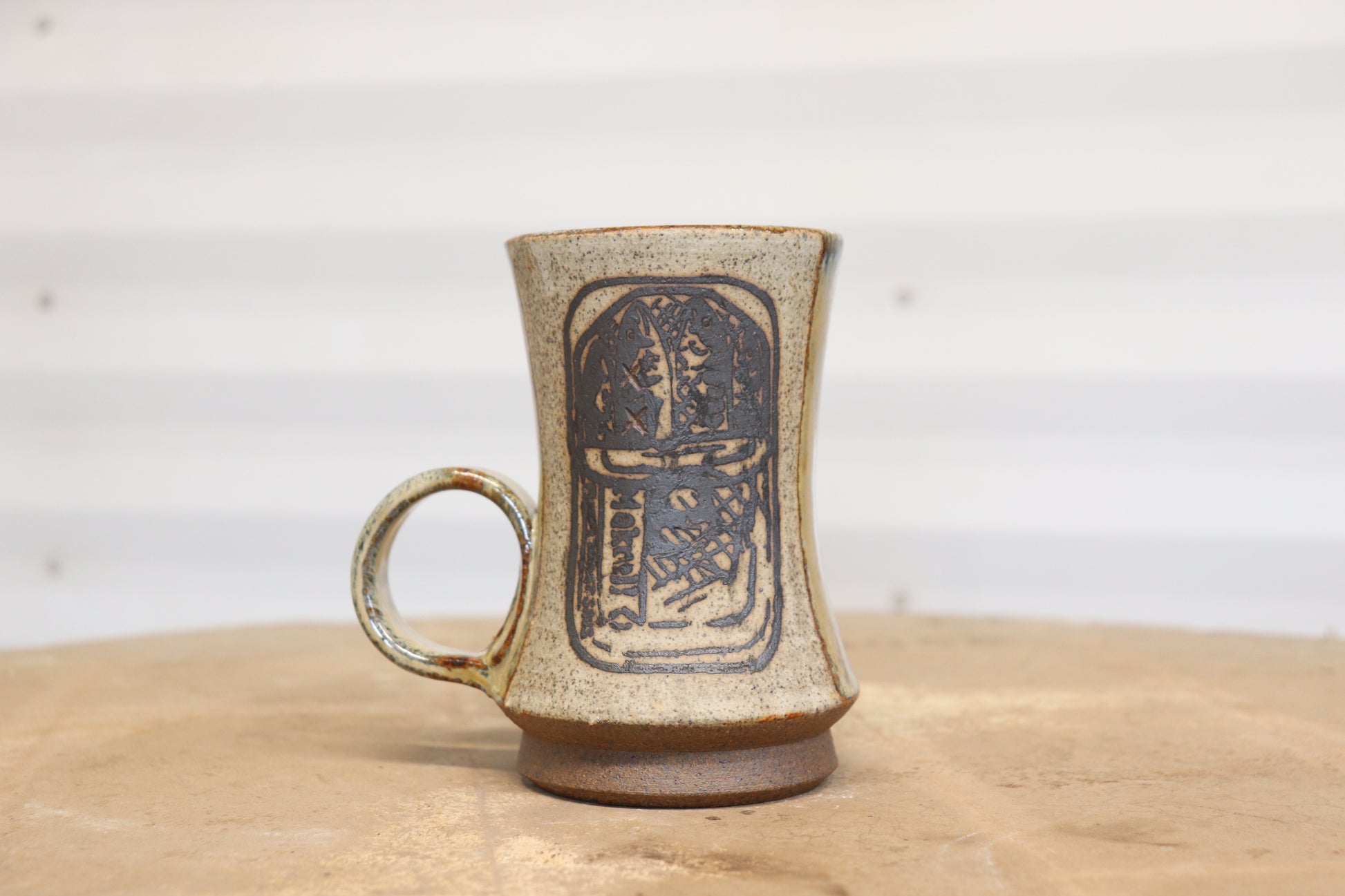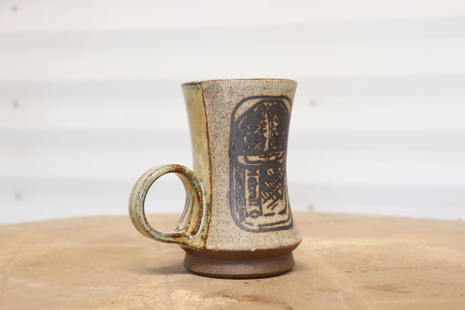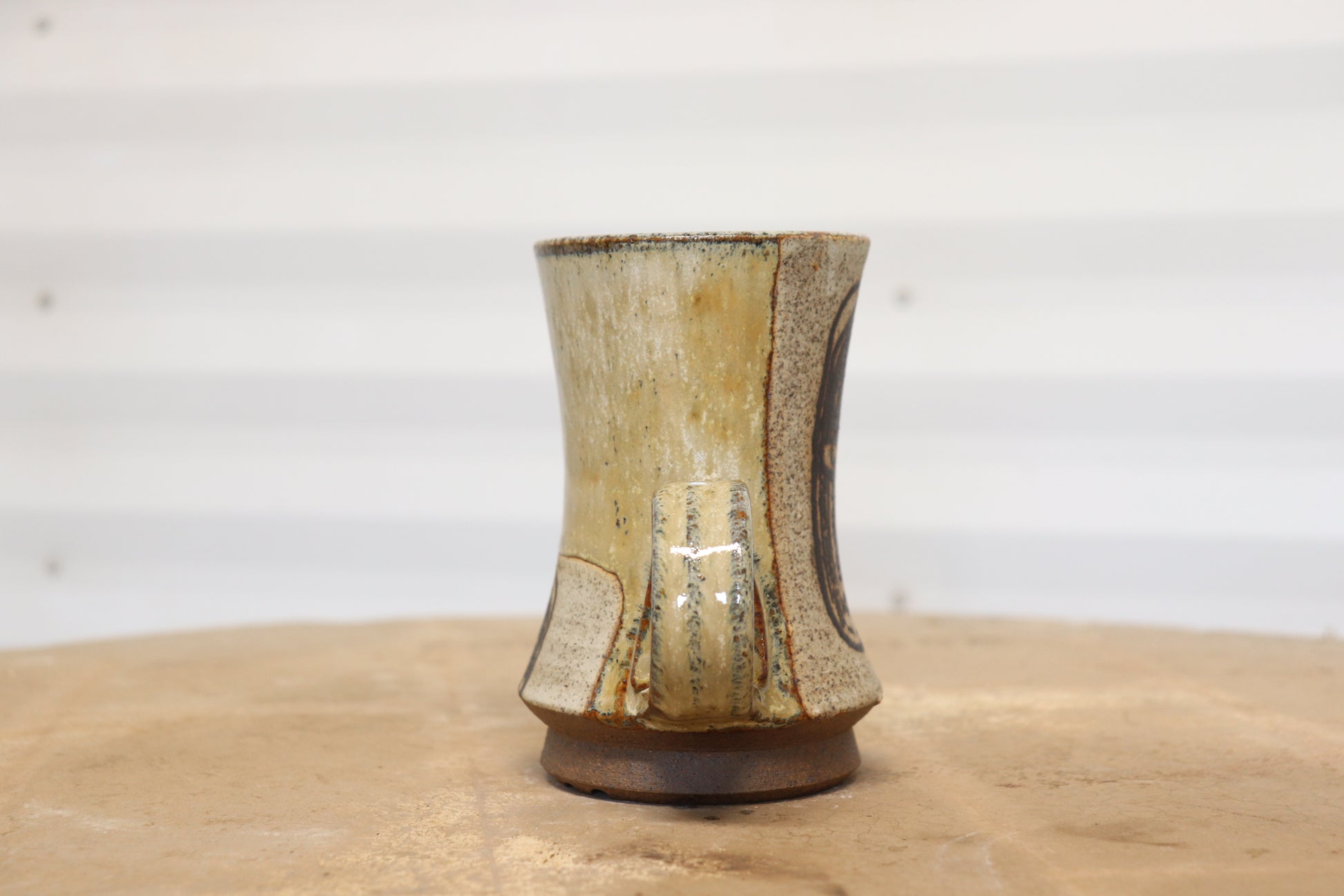 The white glaze on this mug is hand sponged with an ink made from the heavy iron in my well when fired it blends seamlessly with the glaze and adds an extra juicy layer that I absolutely looooove!