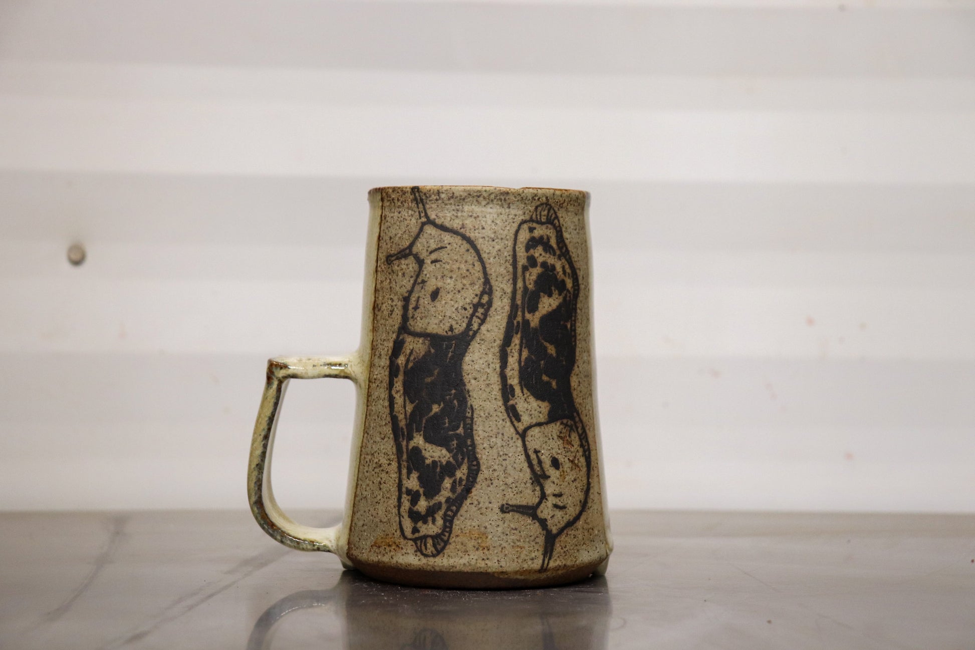 The main body of the mug is 4 in wide x 5 in tall, the handle extends off the side of the mug.