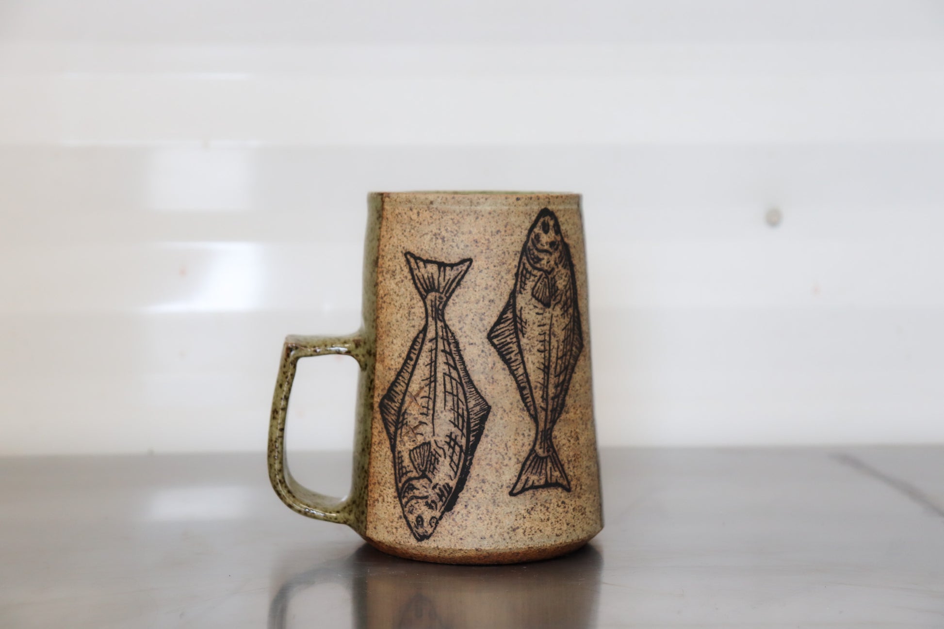 Decorated with a screen print transfer of Halibut !!