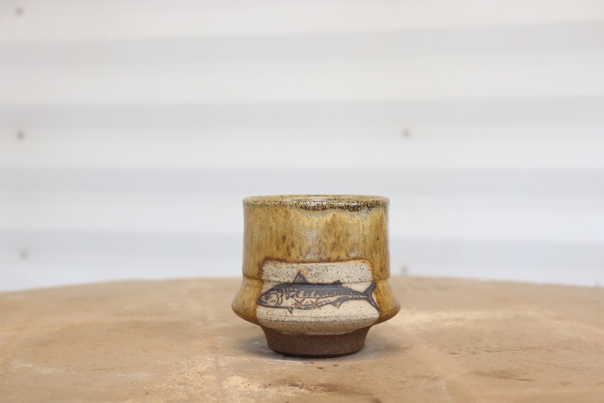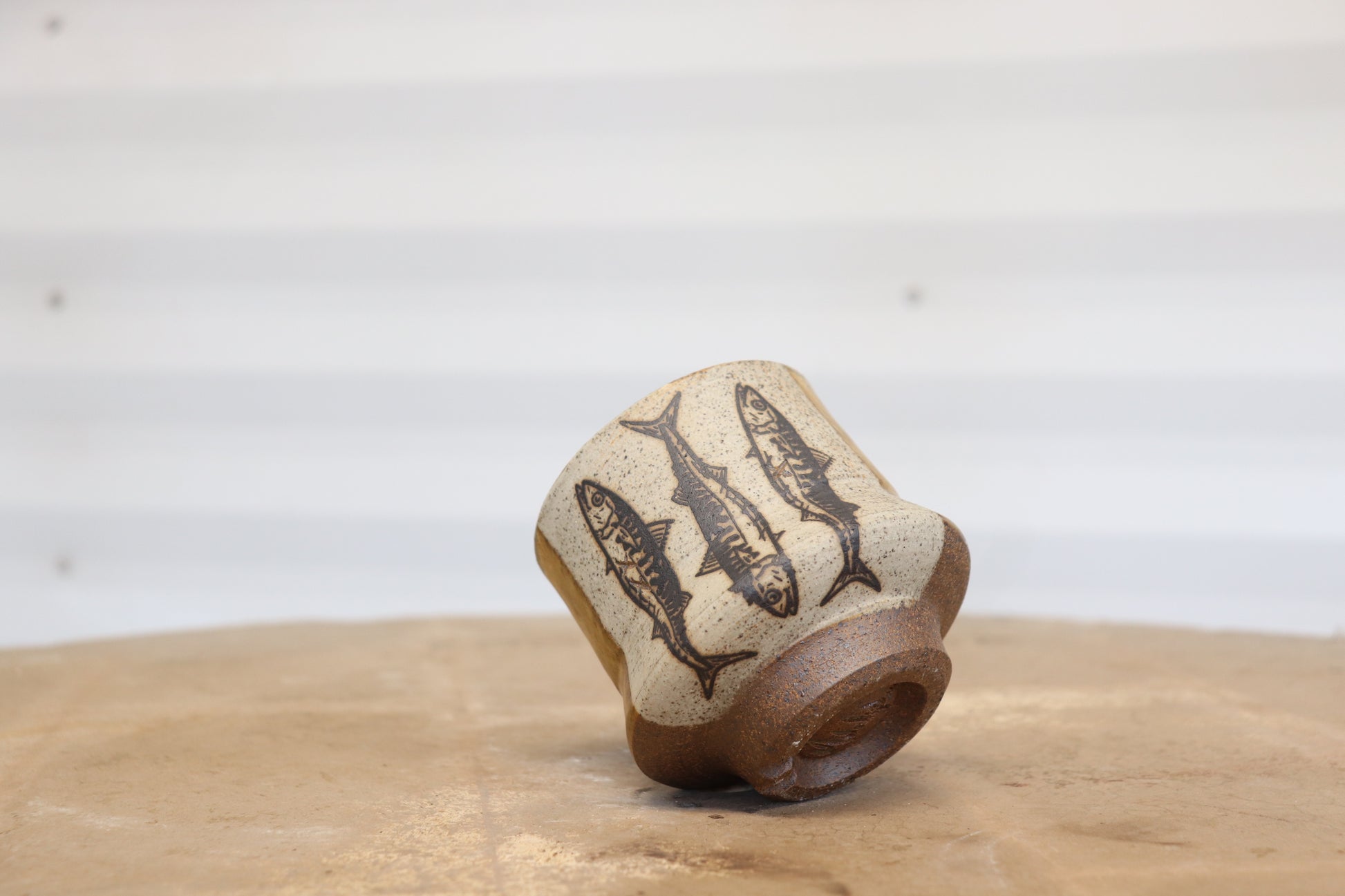 Decorated with a screen print transfer of a trio of little mackerels as well as an extra bonus mackerel on the back! I have had such a fun time with these new fish graphics I have drawn and am excited to share them all with you!